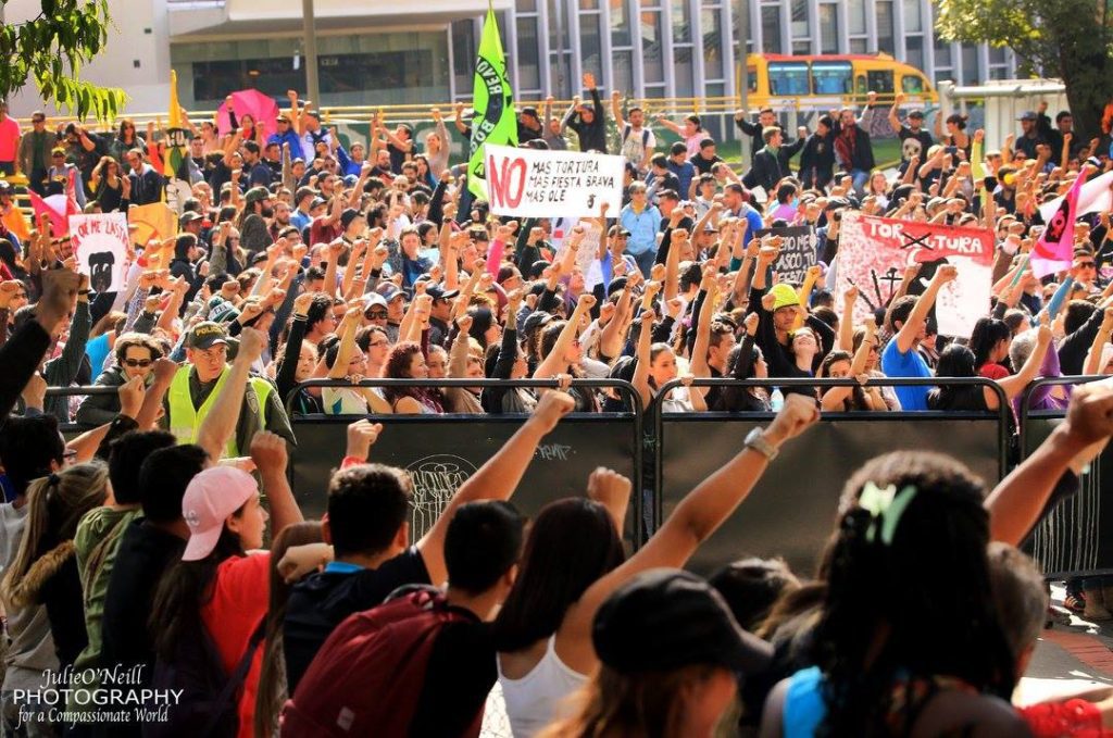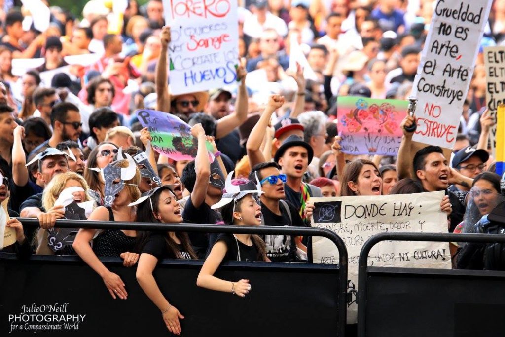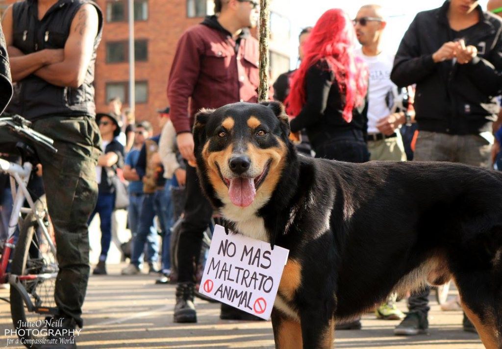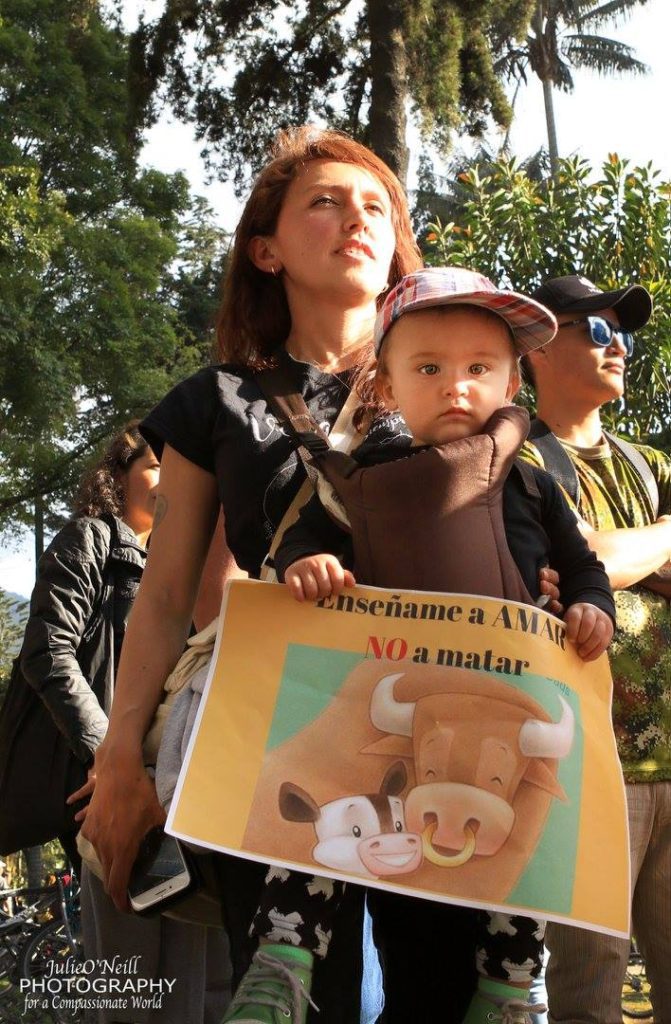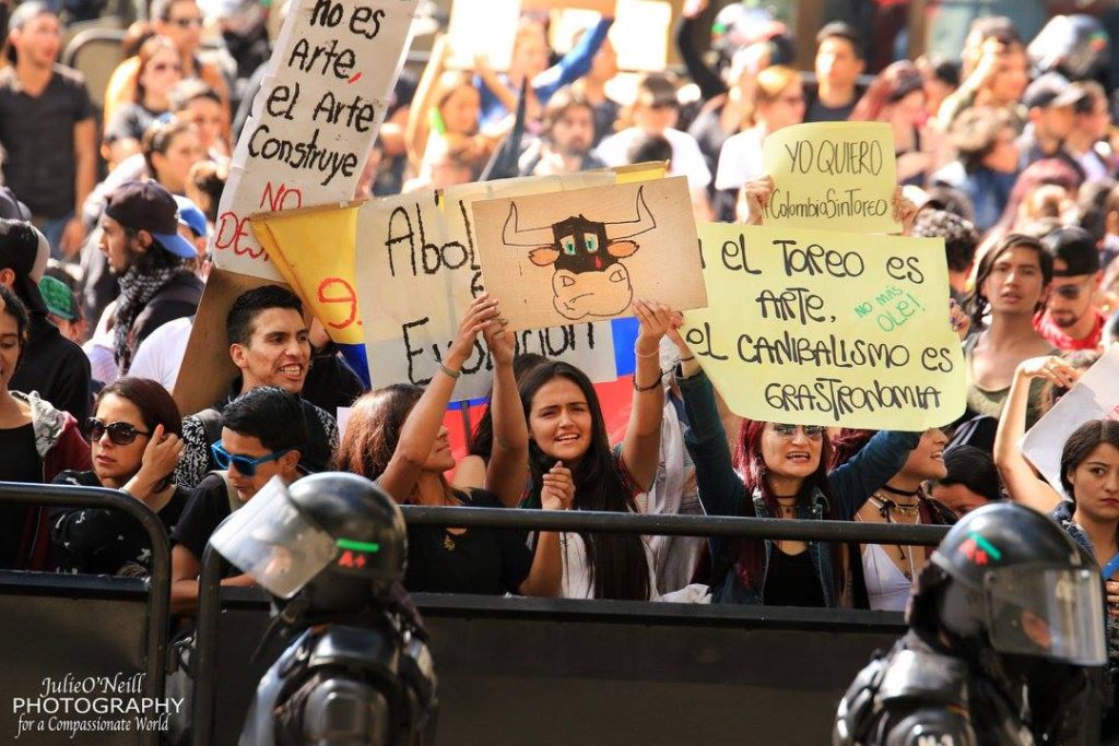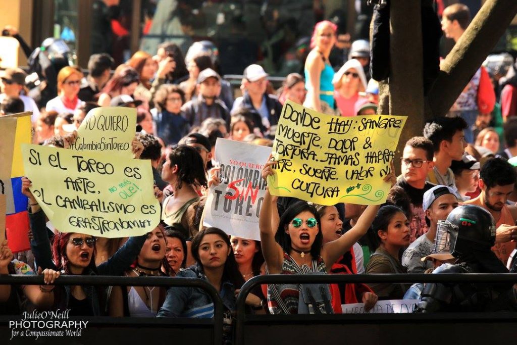 Two weeks ago for the first time in 4 years a bullfight was held in Bogota. The newly elected mayor decided to bring back the event and the people were furious. It was the most emotional, inspiring and frightening demonstration that I have ever attended. Inspiring was the incredible turnout of thousands of compassionate people surrounding the stadium as the bull fight happened inside.