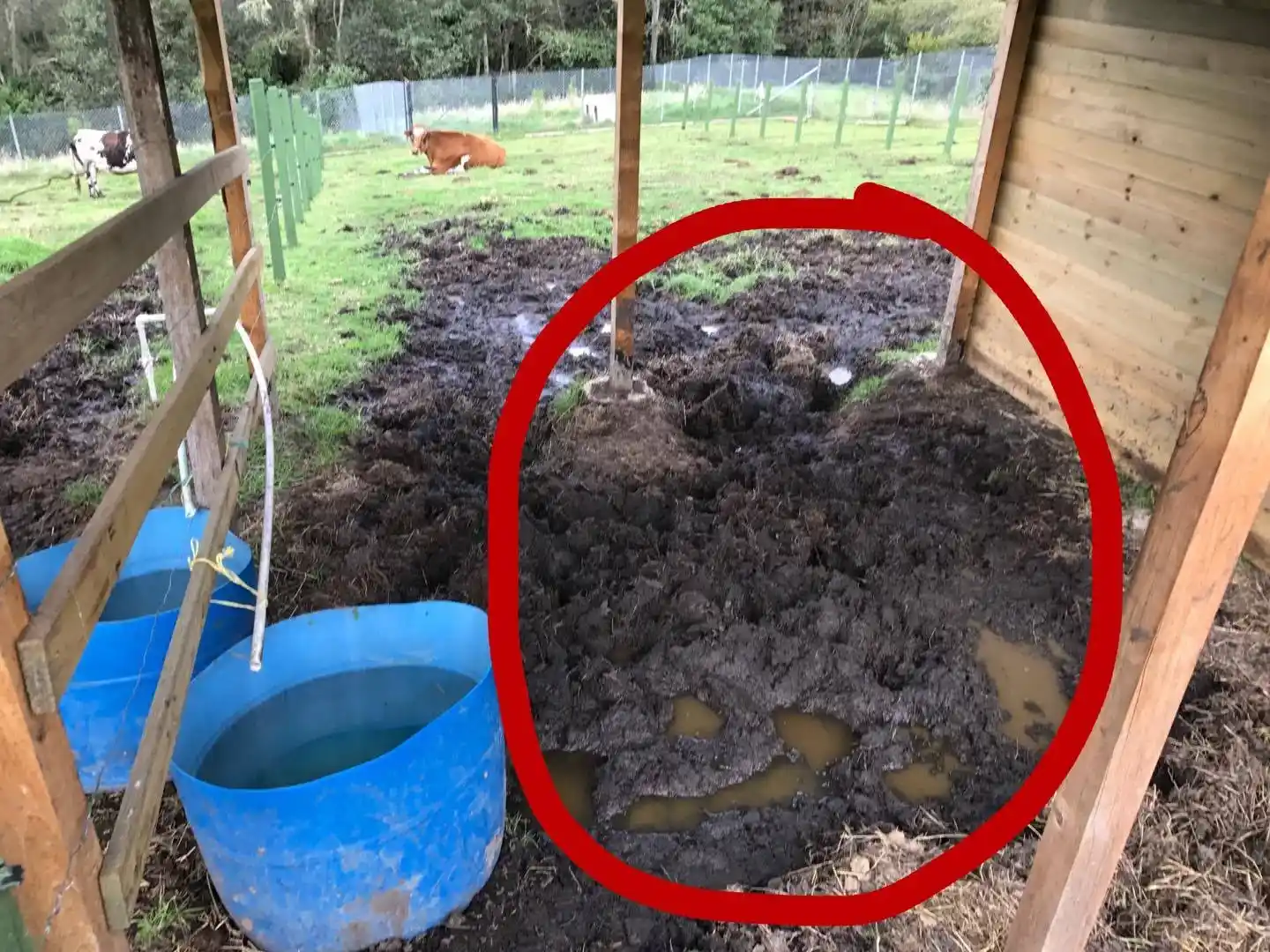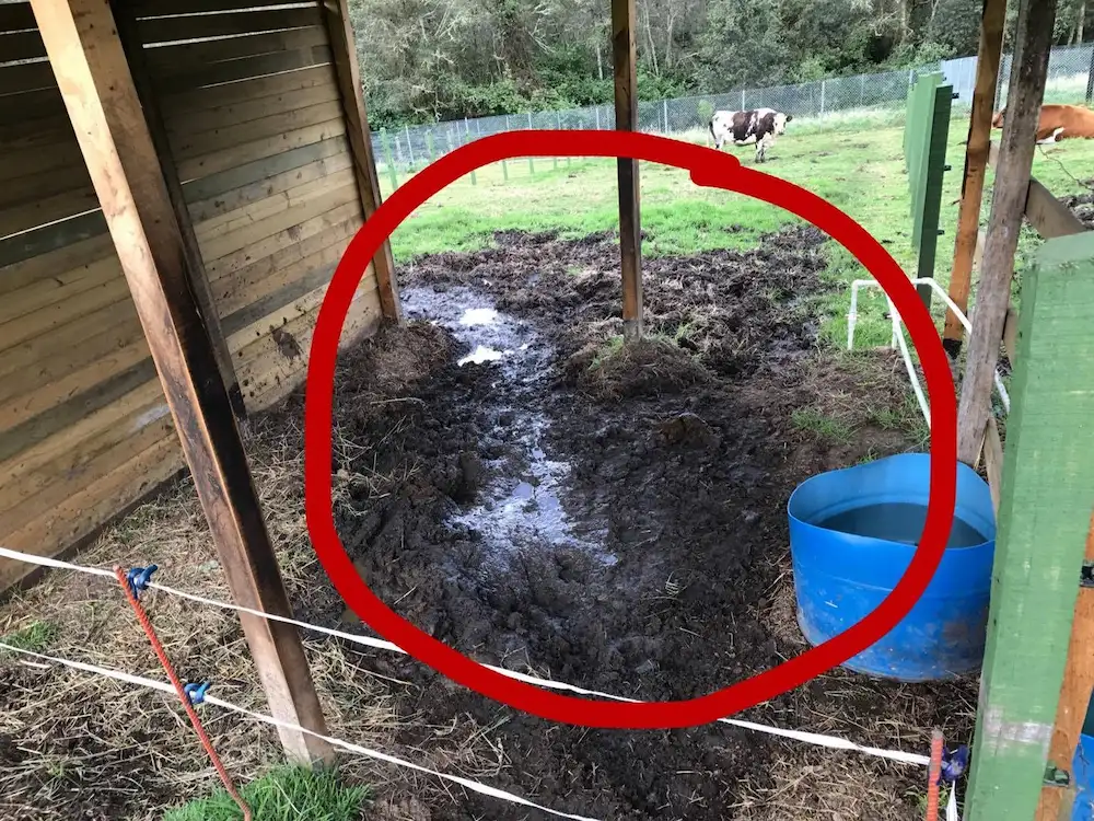 Our plan is to put in a steel-reinforced concrete floor and guttering to guide the water away from their barn.